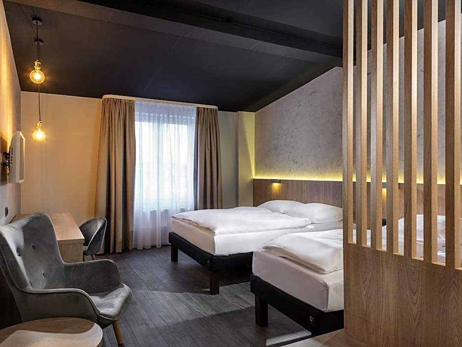 Family room with 4 separate beds is 398 square feet and includes 4 single beds 80-130 width.